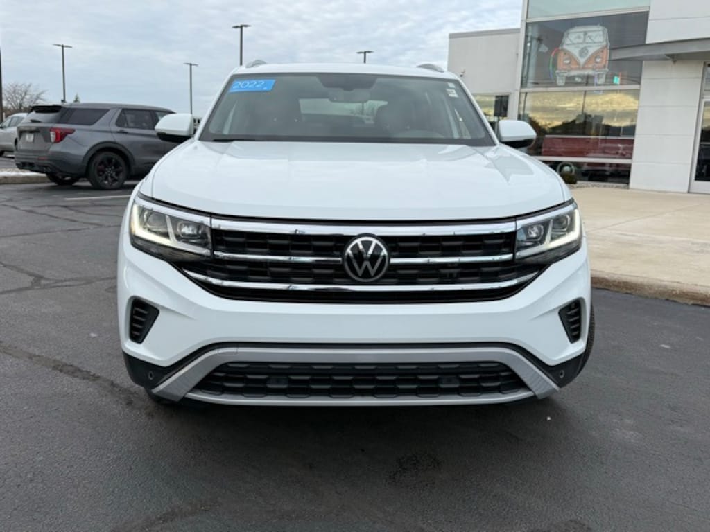 Certified. 2022 Volkswagen Atlas Cross Sport 3.6L V6 SE w/Technology Pure White 3.6L VR6